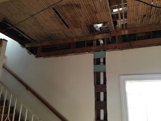 With the plumbing wall removed I was able to take down the old cast iron plumbing. I had to pull up the linoleum and some floor boards in the upstairs bathroom to access everything easily.